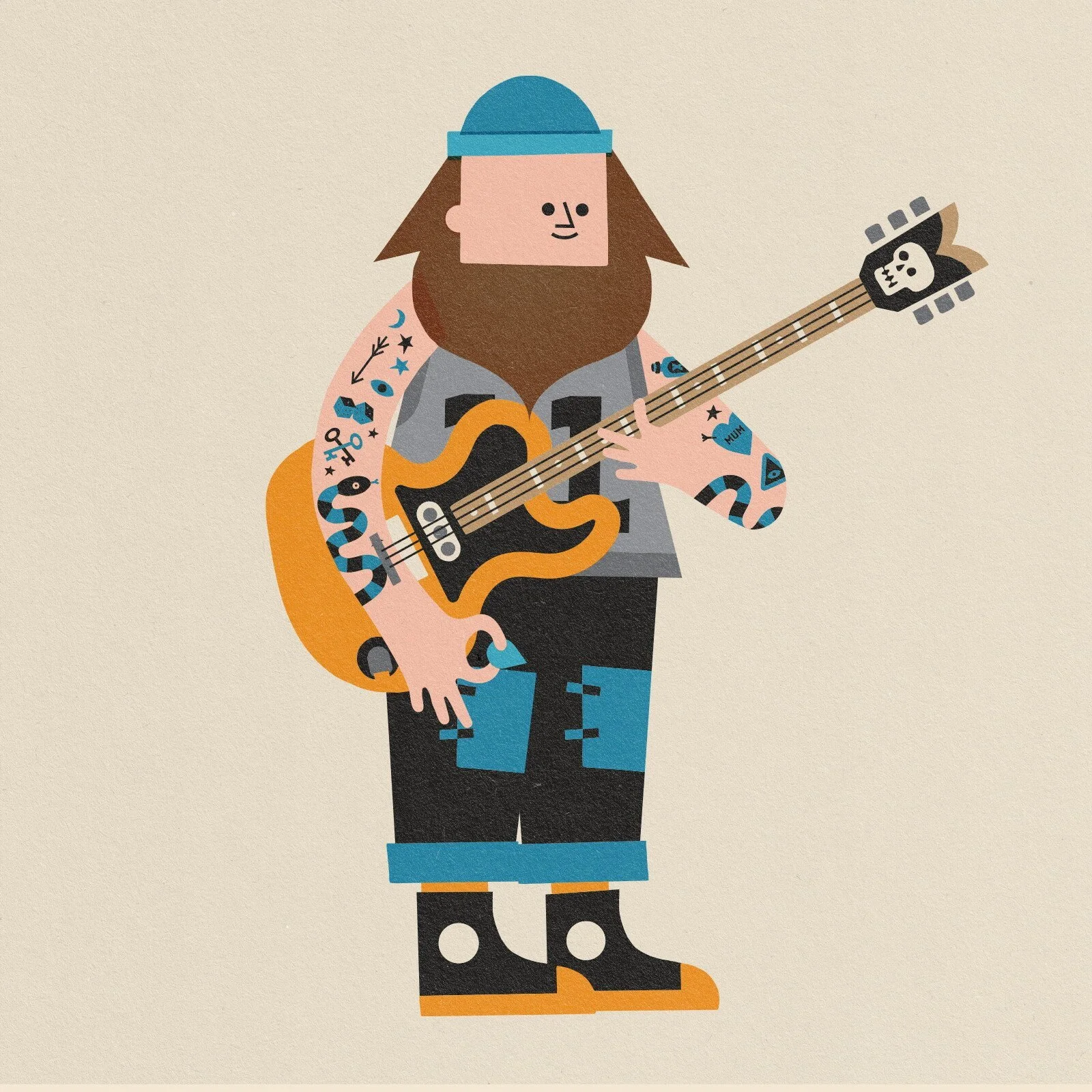 Custom animation made in 10 simple frames brings that playful and naive charm to the artwork that reminds the audience of its handmade aesthetic. With the amp turned up, the distortion on heavy, the guitarist slams a chord and blasts the positive affirmation out to the audience. A mini gif that delivers happiness, fun and a little bit of the unexpected with rock n roll style.